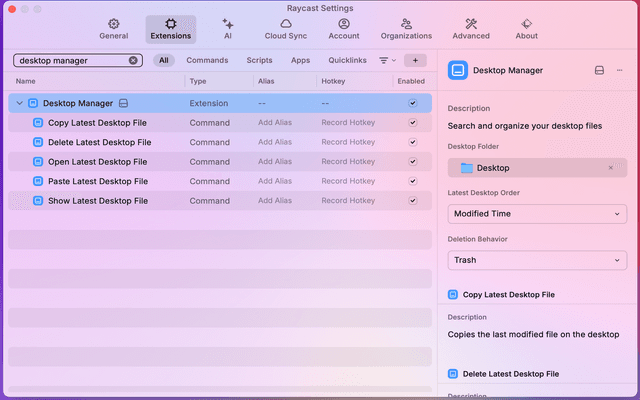 A Raycast extension to search and organize your desktop files.