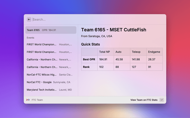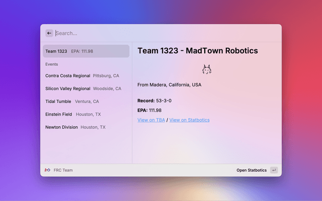 Statistics for FIRST Robotics Competition and FIRST Tech Challenge right at your fingertips.