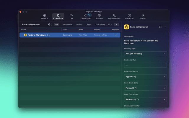 - Customizable Output: Configure Markdown formatting through Raycast preferences