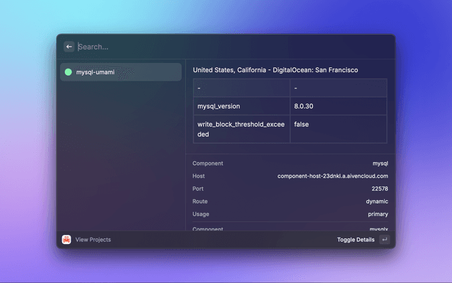 This is a Raycast extension for Aiven - Your Trusted Data & AI Platform. With this extension you can view Projects and their Services.