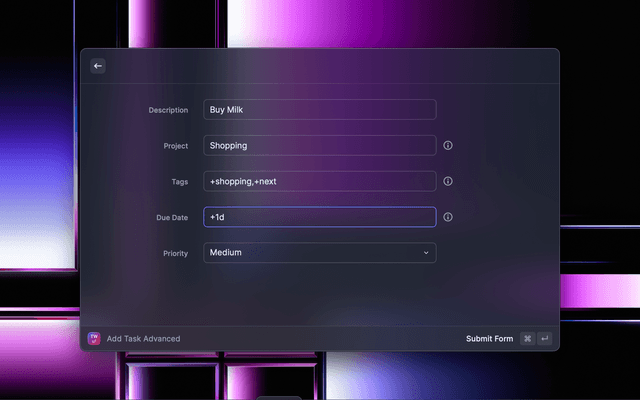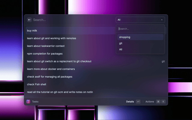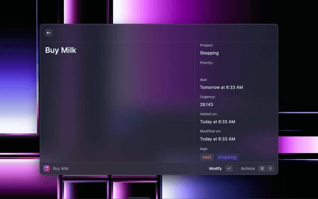 Taskwarrior integration to Raycast.